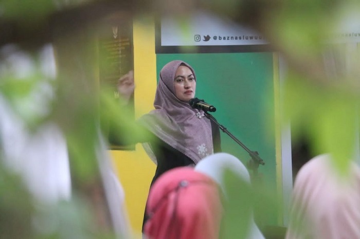 Bupati Luwu Utara, Indah Putri Indriani saat menyampaikan arahan dan sambutan pada Pengukuhan Satgas Baznas Luwu Utara.