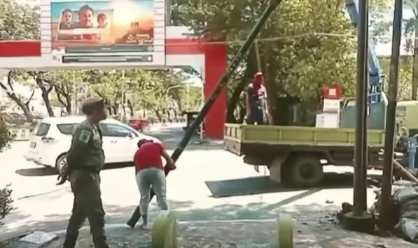 INFOKINI.ID, MAKASSAR – Dinas Pekerjaan Umum (PU) Kota Makassar mencabut tiang fiber optik (FO) yang berada di Jalan Penghibur, Kelurahan Losari, Kecamatan Ujung Pandang pada hari Rabu (12/4/2023).