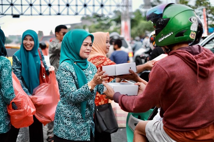 Paket takjil tersebut, kata Mussadiyah, diberikan kepada para pengendara yang terjebak macet. Juga, pedagang kaki lima, tukang ojek online, dan masyarakat yang kurang mampu.