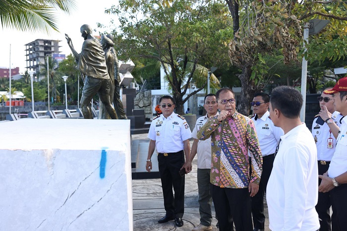 Wali Kota Makassar Moh Ramdhan Pomanto didampingi stakeholder terkait turun langsung memantau persiapan Peringatan Hari OTDA XXVII yang akan berlangsung di sepanjang Anjungan Losari, Rabu (26/4/2023).