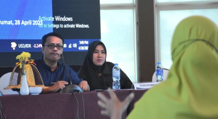Pejabat Fungsional Dinas Pendidikan Kota Makassar, Syarifuddin hadir sebagai narasumber sosialisasi menjelaskan bahwa guru saat ini tidak perlu khawatir soal jaminan hukum.