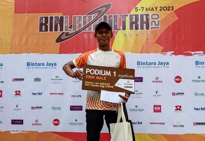 INFOKINI.ID, JAKARTA – Salah satu atlet lari dari Kodam XIV/Hasanuddin yakni Serma Mohammad Hasan Fauzi Bintara Jasmani Korem 141/TP berhasil meraih juara 1 pada kejuaraan lari Binloop Ultra 120 Kategori 200 Km, yang diselenggarakan di Bintaro Sektor 9, Tanggerang Selatan pada 5-7 Mei 2023.