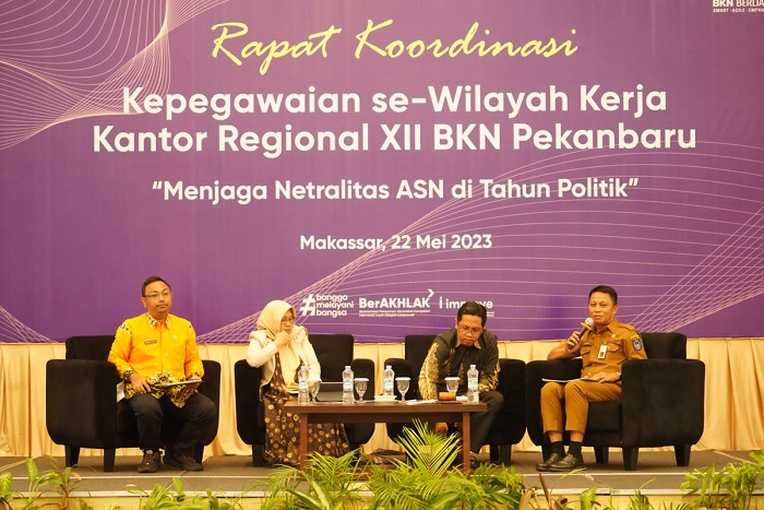 INFOKINI.ID, MAKASSAR – Penjabat (Pj) Sekretaris Daerah Provinsi Sulawesi Selatan Andi Darmawan Bintang, menjadi pembicara dalam Rapat Koordinasi (Rakor) Kepegawaian se-Wilayah Kerja Kantor Regional XI BKN Pekanbaru, di Hotel Grand Claro, Makassar, Senin, 22 Mei 2023.