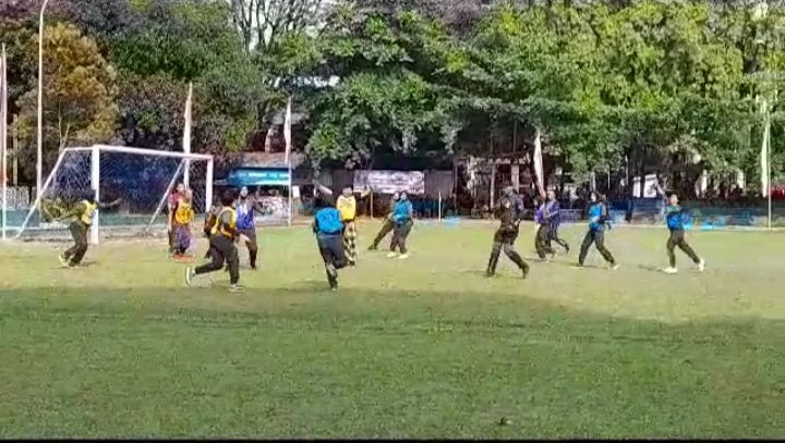 Pertandingan sepak bola sarung dalam rangka HUT Kodam XIV/Hsn Ke-66, di Lapangan Hasanuddin, Sabtu (26/5/2023).(Foto:ist)