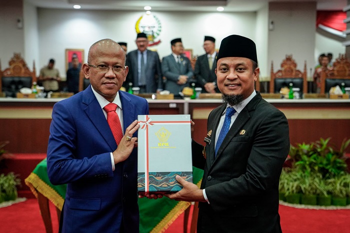 Penyerahan Laporan Hasil Pemeriksaan (LHP) dilakukan langsung oleh Anggota VI BPK RI, Dr. Pius Lustrilanang S.IP.,M.Si.,CSFA, CFrA; didampingi Kepala Perwakilan BPK RI Provinsi Sulawesi Selatan Amin Adab Bangun pada Rapat Paripurna dalam rangka penyerahan LHP BPK RI atas LKPD TA 2022, di Kantor DPRD Sulsel, Jum’at 26 Mei 2023.