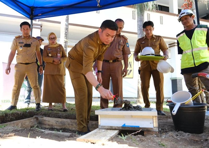 INFOKINI.ID, GOWA – Bupati Gowa Adnan Purichta Ichsan melakukan peletakan batu pertama pembangunan Taman Adnan-Kio di Kantor Bupati Gowa, Senin (29/5/2023).