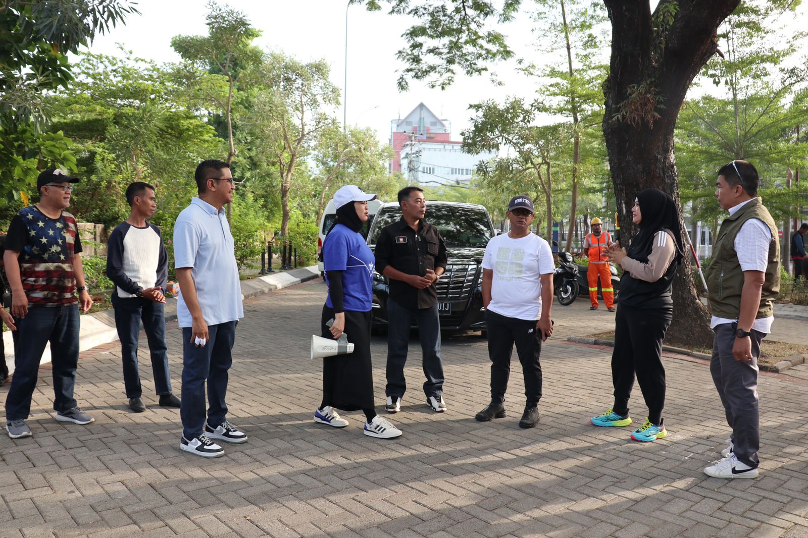 Kepala Dinas Pekerjaan Umum (PU) Makassar Zuhaelsi Zubir langsung turun ke lapangan untuk mendampingi Wawali Kota Makassar Fatmawati Rusdi dan Ketua TP PKK Kota Makassar, yang meninjau pelaksanaan Gerakan Bersih Taman Kota di bilangan Jalan Metro Tanjung Bunga, Jumat (9/6/2023).