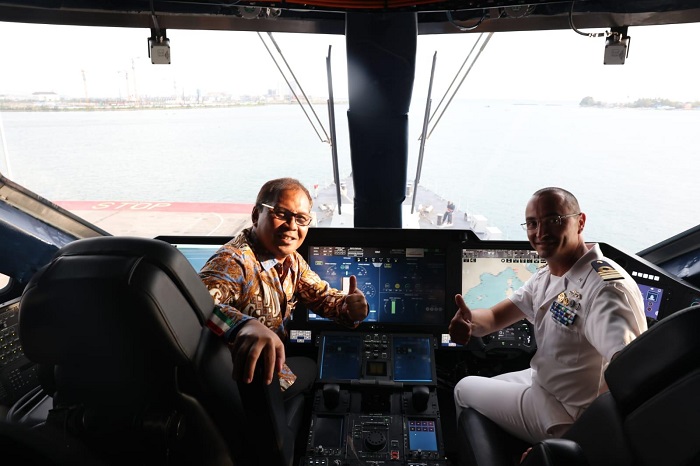 “Ini merupakan kali pertama saya berada di kapal seperti ini. Jadi suatu kehormatan berada di sini, apalagi kapal ini memiliki teknologi yang terdepan di dunia,” kata Danny Pomanto di sela-sela kunjungannya di atas Kapal Fransesco Morosini, di Pelabuhan Soekarno Hatta.