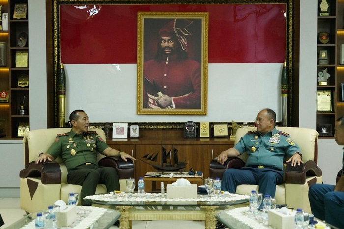 INFOKINI.ID, MAKASSAR – Pangdam XIV/Hasanuddin Mayjen TNI Totok Imam Santoso menerima kunjungan Komandan Sekolah Staf dan Komando TNI Angkatan Laut (Danseskoal), Laksamana Muda TNI Yoos Suryono Hadi, bertempat di ruang tamu Pangdam Makodam, Kota Makassar, Senin (19/6/2023).