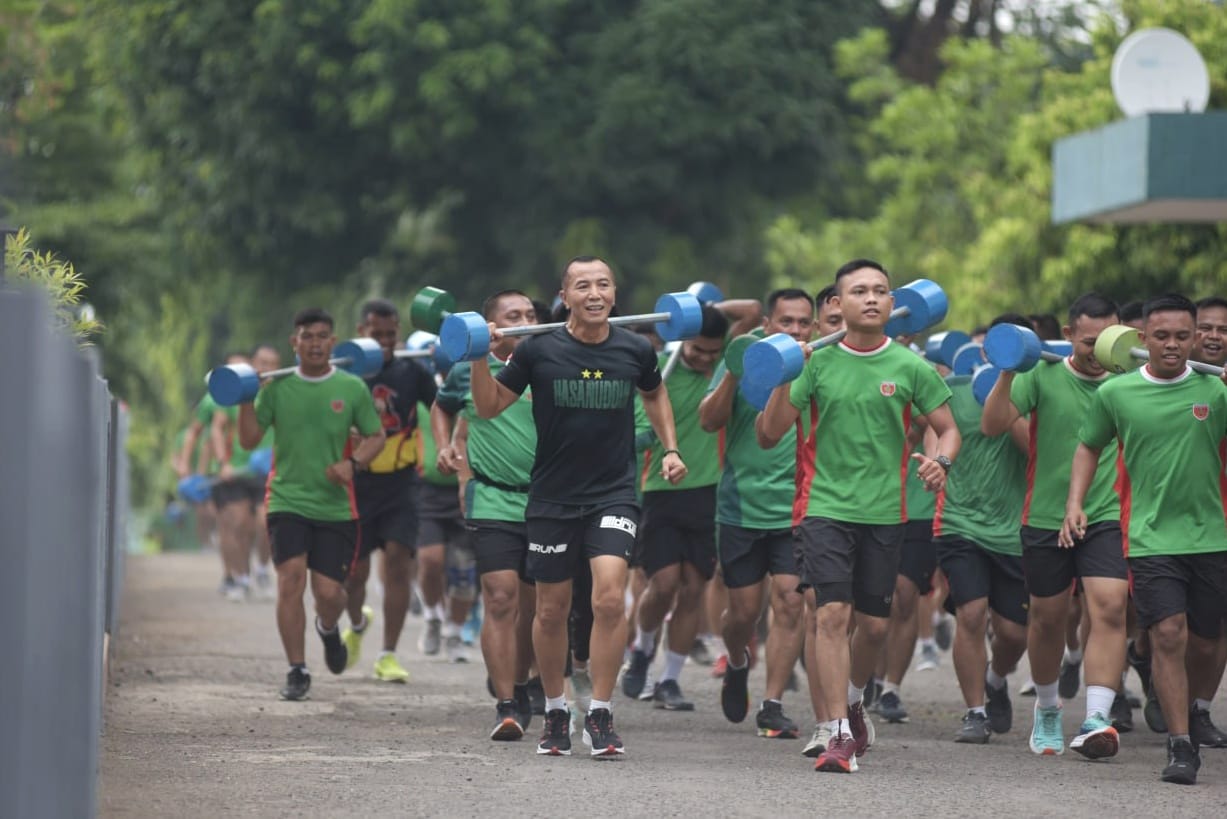 Usai jamdam, Mayjen Totok memimpin lari pagi bersama, mengelilingi markas Kodam. Kali ini lari dengan kondisi berbeda, karena setiap personil berlari dengan jarak 3 kilometer dengan memikul barbel seberat 20 kilogram di pundak masing-masing. Lari, menjadi salah satu olahraga yang menjadi rutinitas prajurit Kodam. Selain memupuk kekompakan dan kebersamaan, lari juga disebut pangdam sebagai olahraga yang healthy, sporty dan membuat happy.(*)