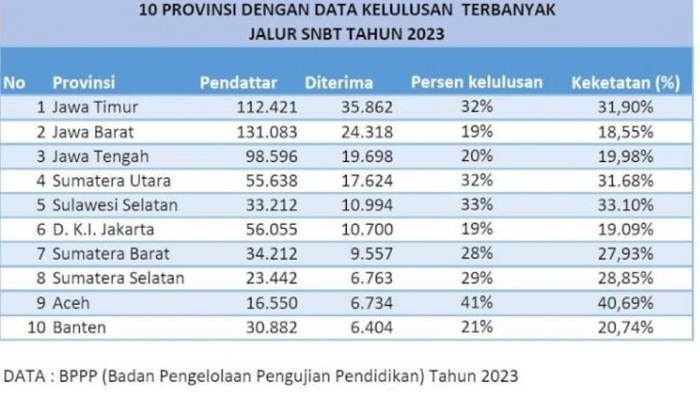 Hasilnya Sulawesi Selatan masuk 5 besar provinsi dengan jumlah siswa terbanyak yang diterima di Perguruan Tinggi Negeri (PTN) lewat jalur UTBK SBNT.