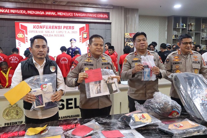 Polda Sulsel menggelar konferensi pers untuk mengumumkan hasil ungkap kasus Operasi Sikat Lipu yang dilaksanakan selama 20 hari.