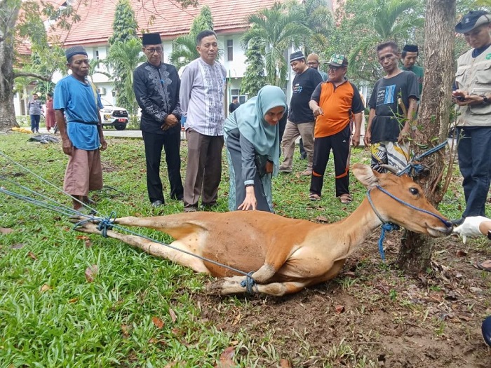 Adapun hewan kurban yang berhasil disembelih, yaitu sapi sebanyak 1.151 ekor, kerbau tiga ekor, dan kambing 59 ekor. Bupati bersama suami, M. Fauzi, menyumbang 7 ekor sapi.