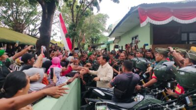 INFOKINI.ID, MAKASSAR– Menteri Pertahanan RI Prabowo Subianto memberikan bantuan ribuan kendaraan dinas (randis) berupa motor jenis trail sebagai kendaraan operasional kepada babinsa Kodam XIV/Hasanuddin. Penyerahan randis tersebut, dilakukan secara simbolis Menhan Prabowo Subianto di Koramil 1408-06/Mamajang, Kamis (13/7/2023), dalam rangkaian kunjungannya di Kota Makassar. Dalam kunjungannya tersebut, Menhan Prabowo didampingi Pangdam XIV/Hasanudddin Mayjen TNI Totok Imam Santoso, bersama Forkopimda Sulsel, dan para PJU TNI di wilayah Kota Makassar. Hadir di kesempatan tersebut, Dandim 1409/Gowa, Letkol Inf Muh Isnaeni Natsir beserta jajaran perwira dan juga para babinsa.