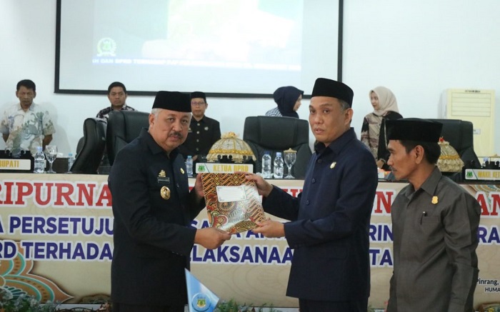 Sementara itu, dalam pandangan umumnya, Bupati Pinrang Irwan Hamid mengungkapkan, penyampaian pertanggungjawaban adalah tugas dari Pemerintahan Daerah sebagai bentuk pertanggungjawaban pengaturan pengelolaan keuangan daerah seperti yang tercantum dalam undang-undang keuangan negara.