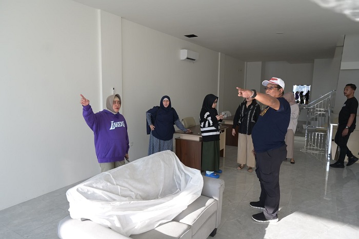 Indira melakukan pengecekan terhadap interior dan fasilitas kantor.