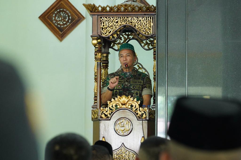 “Sholat itu adalah kewajiban dan akan mendatangkan keberkahan. Mari tanamkan dalam diri dan pahami sebagai seorang muslim, bahwa sholat adalah suatu kewajiban yang harus dilakukan. Bukan hanya sholat jumat namun sholat lima waktu. Syukur-syukur ditambah dengan sunnah. Kalau itu kalian laksanakan Insya Allah nanti berkah. Sempatkan waktu, untuk melaksanakan ngaji bersama setelah sholat dzuhur. Ini saya minta kepada seluruh jajaran Kodam yang beragama Islam, semuanya sama. Karena hanya dengan itu yang bisa membuat kita hidup tenang dan nyaman,” jelas lulusan terbaik Seskoad tahun 2002 ini.