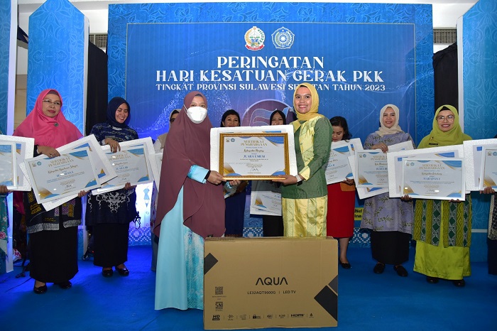 Ketua TP PKK Sulsel, Naoemi Octarina, menyampaikan apresiasi dan ucapan selamat kepada para pemenang lomba pada peringatan HKG PKK Tingkat Provinsi Sulsel. Penilaian ini murni dilakukan para juri berdasarkan indikator, dan sudah dilaksanakan sejak Januari 2023 lalu.