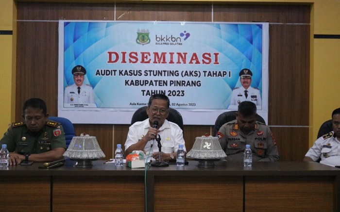 INFOKINI.ID, PINRANG – Wakil Bupati Pinrang H Alimin membuka kegiatan Diseminasi Audit Kasus Stunting Tahap I Tahun 2023 di Aula Kantor Dinas Pengendalian Penduduk, Keluarga Berencana, Pemberdayaan Perempuan dan Perlindungan Anak (DP2KBP3A), Rabu (2/8/2023).