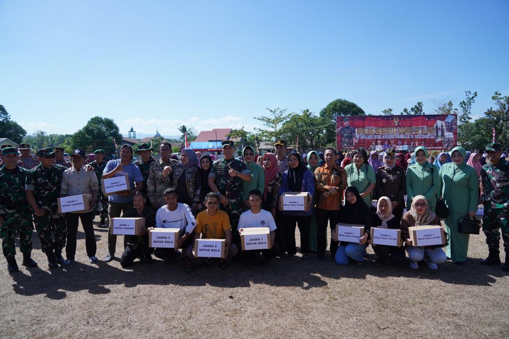 Pangdam yang hadir didampingi Ketua Persit Kartika Chandra Kirana PD XIV/Hasanuddin Desi Totok Imam, sejumlah PJU Kodam Hasanuddin dan Pengurus Persit PD XIV/Hsn ini, juga memberikan bantuan ratusan sembako kepada warga yang tidak mampu dan anak terdampak stunting yang berada di wilayah TMMD. Orang nomor satu di Kodam Hasanuddin ini juga menyerahkan hadiah dan bantuan dana pembinaan kepada para pemenang lomba pada pelaksanaan Satgas TMMD, yakni pertandingan sepak bola, bola voli dan sepak takraw.