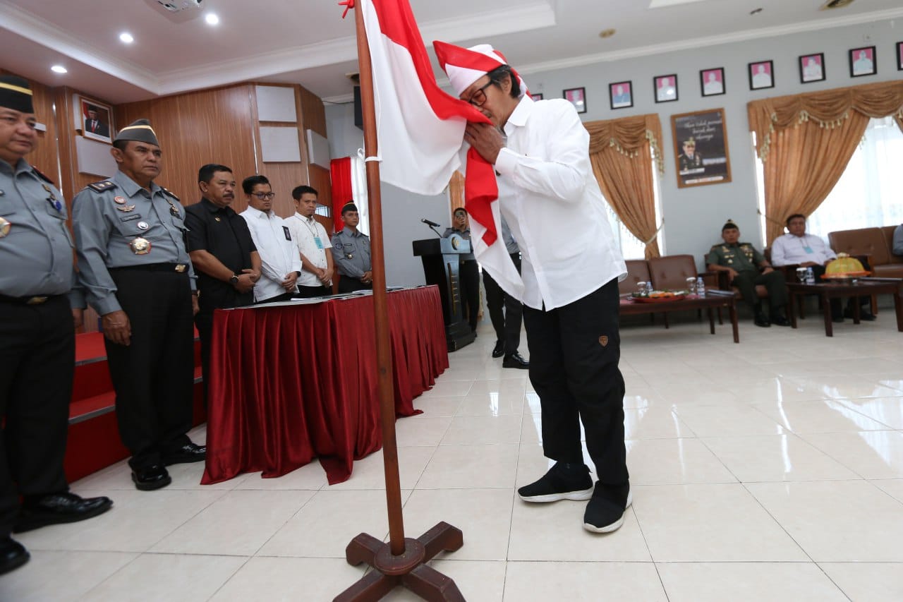 Prosesi Ikrar setia yang diawali pembacaan Ikrar yang dilanjutkan penghormatan dan penciuman bendera merah putih serta penandatanganan pernyataan Ikrar Setia NKRI, ini dilaksanakan di Kantor Lembaga Pemasyarakatan (Lapas) Klas I Makassar, Senin (14/8/2023).