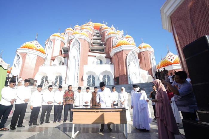 “Alhamdulillah, meresmikan Masjid Kubah 99 Asmaul Husna. Kubahnya sudah 99. Jadi kalau kemarin belum sempurna, kita sudah selesaikan semua. Termasuk pelatarannya. Tapi ini memang butuh intens perawatan karena memang materialnya yang harus dirawat,” katanya.