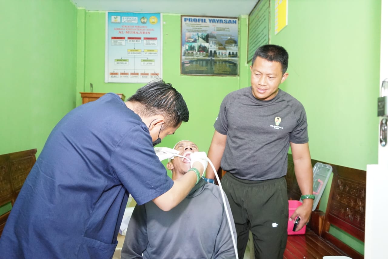 INFOKINI.ID, MAKASSAR– Kegiatan Jumat Berkah dilaksanakan berbeda oleh Kodim 1409/Gowa, dengan menghadirkan layanan Scalling Gigi atau pemeriksaan dan pembersihan karang gigi secara gratis, bagi warga penghuni Yayasan Pembinaan Muallaf Al Istiqomah Mundo Perdido dan juga warga masyarakat sekitar yang tergolong tidak mampu, Jumat (25/8/2023).