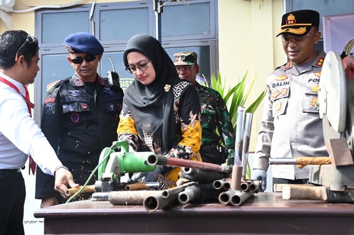 Hal itu disampaikan Bupati Luwu Utara, Indah Putri Indriani usai ikut melakukan pemusnahan barang bukti berupa senjata tajam (sajam) dan senjata rakitan di Mapolres Luwu Utara.