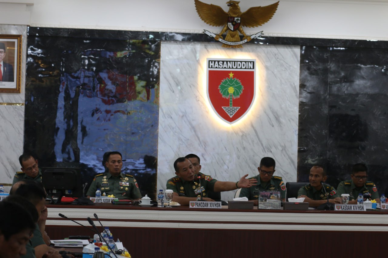 INFOKINI.ID, MAKASSAR– Tentara Manunggal Membangun Desa (TMMD) ke-118 akan kembali digelar sebagai TMMD terakhir di Tahun Anggaran 2023. TMMD ke-118 ini akan dilaksanakan di empat Kodim yang ada di wilayah Kodam XIV/Hasanuddin, yaitu Kodim 1410/Bantaeng, Kodim 1420/Sidrap, Kodim 1427/Pasangkayu dan Kodim 1416/Muna. Paparan kesiapan pelaksanaan dan Lomba Karya Jurnalistik (LKJ) TMMD ke-118 disampaikan para Komandan Kodim (Dandim) / Komandan Satuan Tugas (Dansatgas) TMMD ke-118, kepada Pangdam XIV/Hasanuddin Mayjen TNI Totok Imam Santoso, di Ruang Bina Yudha (RBY) Makodam, Rabu (30/8/2023).
