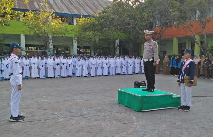 Saat memimpin upcara di sekolah tersebut, Ipda Hamsal menyampaikan di hadapan para siswa dan siswi SMP Negeri 4 Gowa terkait tata tertib berlalulintas selama Operasi Zebra Pallawa 2023.