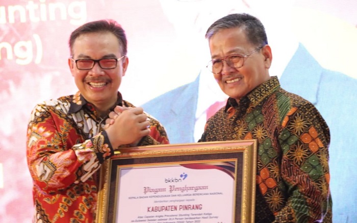 INFOKINI.ID, PINRANG – Atas upaya penanganan dan percepatan penurunan angka stunting, Pemerintah Kabupaten Pinrang meraih Penghargaan sebagai kabupaten peringkat 3 dengan angka prevalensi stunting terendah.