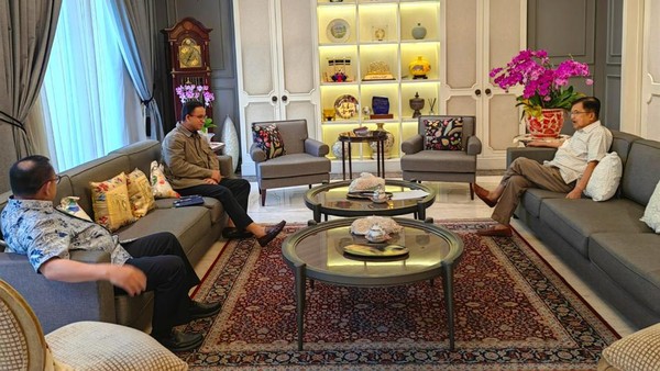 Pertemuan berlangsung di kediaman JK, di Jalan Brawijaya, Jakarta Selatan. Dari foto yang dibagikan, tampak Anies mengenakan kemeja berwarna coklat. Terlihat JK duduk di sofa di seberang Anies.