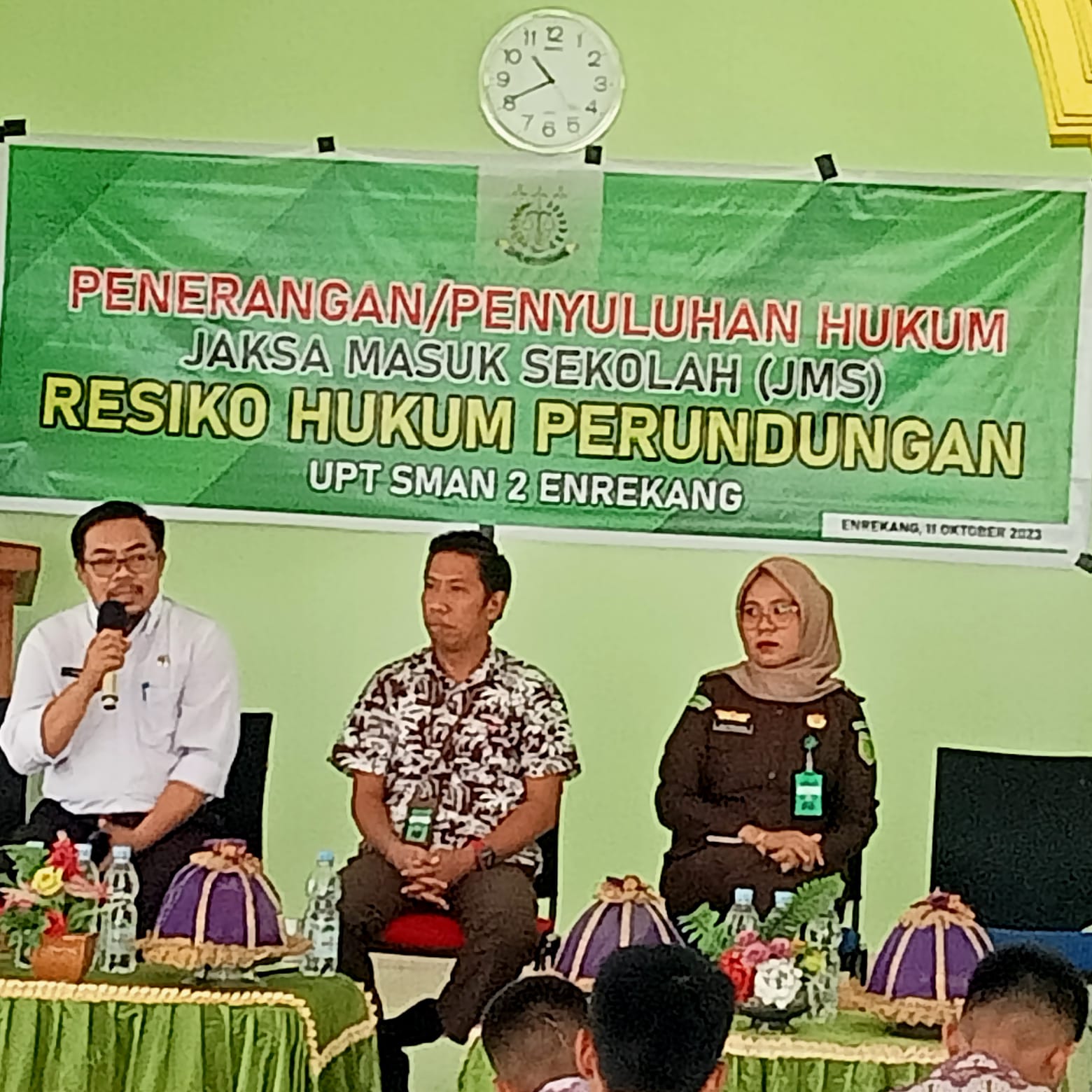 INFOKINI.ID, ENREKANG – Kejaksaan Negeri Enrekang menggelar penyuluhan hukum lewat Program Jaksa Masuk Sekolah (JMS) di Aula UPT SMAN 2 Enrekang, Rabu (11/10/2023). Penyuluhan hukum membahas fenomena perundungan dan risiko hukumnya.