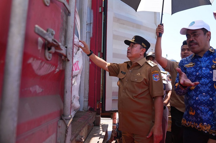 Dokumentasi: Pj Gubernur Sulsel, Bahtiar Baharuddin, melepas ekspor sejumlah komoditi unggulan asal Sulsel dengan nilai ekspor Rp1,64 triliun, di Pelabuhan Petikemas, Makassar, Selasa, 17 Oktober 2023. Produk unggulan tersebut diekspor ke 29 negara tujuan, terutama ke Shanghai China.