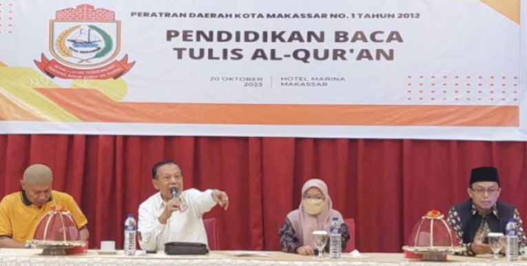 Hal itu disampaikannya saat Sosialisasi Peraturan Daerah (Perda) Nomor 1 Tahun 2012 tentang Pendidikan Baca Tulis Al-Quran, di Hotel Marina, Jumat (20/10/2023).
