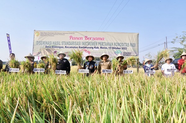 Pj Gubernur Bahtiar mengaku sangat senang bisa ikut panen raya padi bersama petani di Desa Alatengae, Kecamatan Bantimurung. Ia mengapresiasi panen raya yang bisa dilakukan di tengah fenomena El Nino, yang mengakibatkan kekeringan ekstrem di sejumlah wilayah.