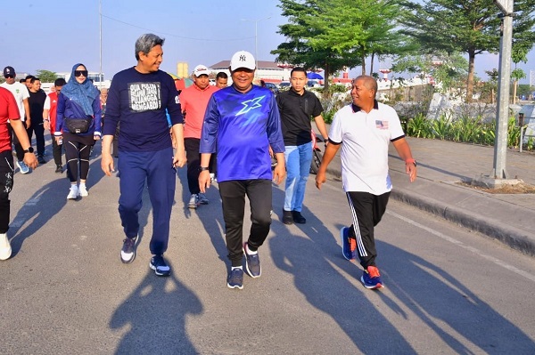 Pj Gubernur Sulsel Bahtiar bersama kepala OPD dan staf, menikmati udara pagi dengan berjalan kaki dari Center Point Of Indonesia (CPI), dan finish di Rujab Gubernur Sulsel.