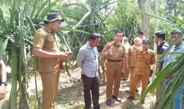 Kepala Dinas TPHP Sinjai H. Kamaruddin saat mengunjungi kawasan buah naga di Desa Sukamaju, Selasa (24/10/2023) mengatakan bahwa pihaknya bersama Instalasi Pengamatan, Peramalan dan Pengendalian Organisme Pengganggu Tanaman (IP3 OPT) Dinas TPHP Sulsel berupaya mengendalikan hama kanker batang yang dialami oleh para petani buah naga.
