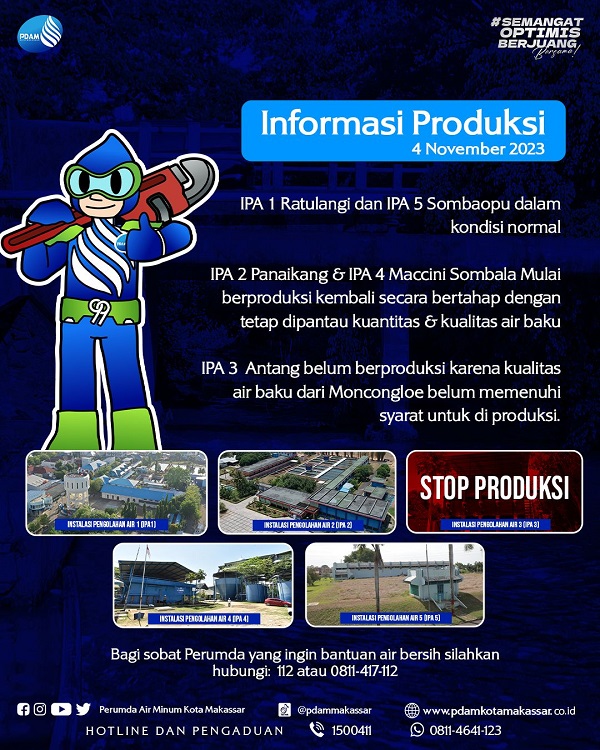 Dalam penyampaiannya, PDAM Makassar menginformasikan bahwa IPA 1 Ratulangi dan IPA 5 Sombaopu kini dalam kondisi normal.