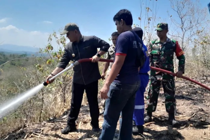Pj Bupati Sinjai usai membantu petugas pemadam kebakaran memadamkan api, langsung mengimbau warga di sekitar lokasi kejadian untuk selalu waspada dengan kondisi cuaca yang begitu panas akibat kemarau yang masih terjadi hingga saat ini.