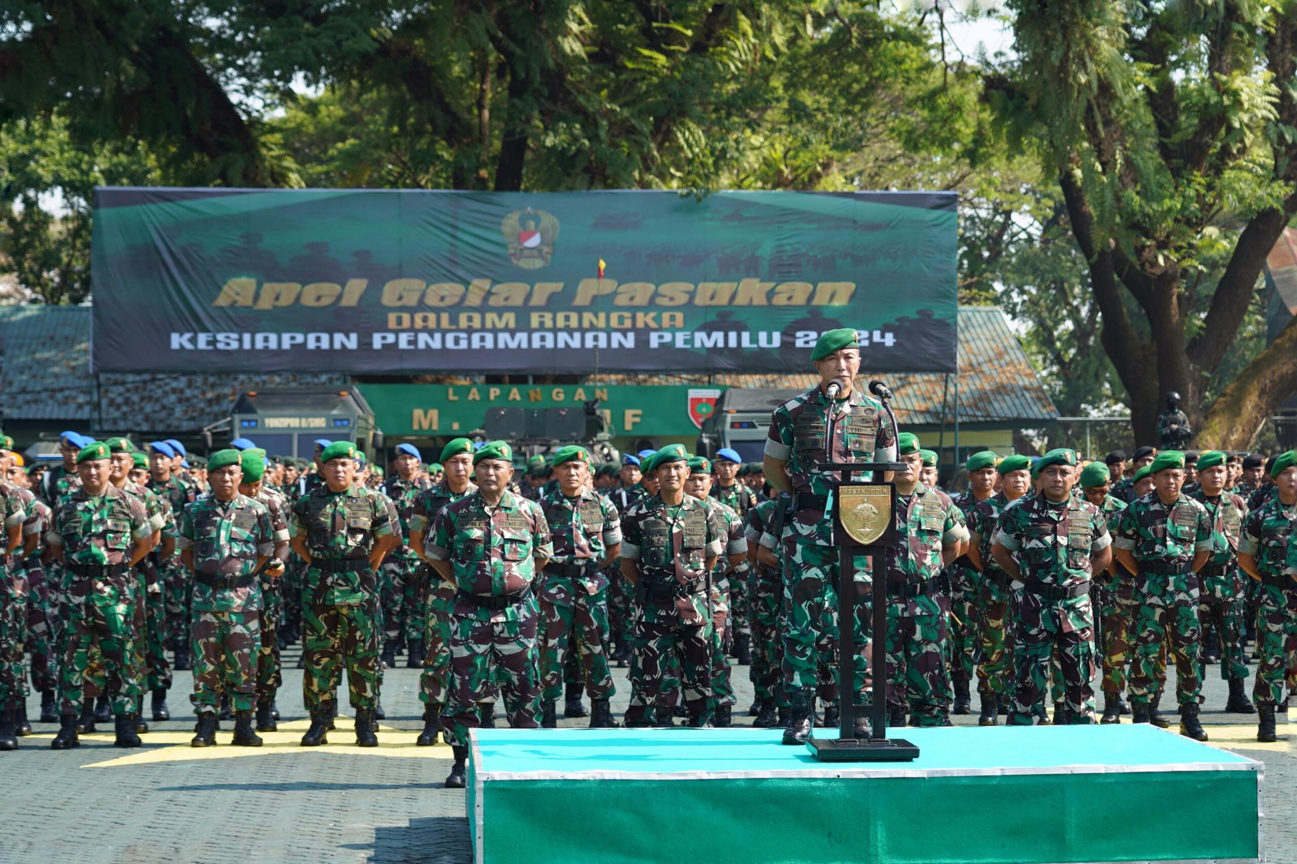 Dalam apel yang dilakukan di empat titik di wilayah Kodam Hasanuddin, yaitu di Kota Makassar, Kabupaten Bone, Mamuju, dan Kendari itu, Mayjen Totok juga memastikan bahwa prajurit “Ayam Jantan Dari Timur” ini telah memiliki kesiapan optimal pada pengamanan pemilu di wilayah Kodam Hasanuddin yang tercatat ada 38.730 lokasi Tempat Pemungutan Suara (TPS).