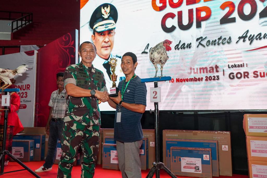 INFOKINI.ID, MAKASSAR– Kontes ayam ketawa yang digelar untuk memperebutkan Gubernur Sulsel Cup 2023, diapresiasi Pangdam XIV/Hasanuddin Mayjen TNI Totok Imam Santoso. Menurutnya, kontes ayam ketawa sebagai salah satu kearifan lokal yang harus dikembangkan sebagai salah satu menjaga budaya Sulsel. Mantan Gubernur Akmil ini meyakini salah satu fauna khas Sulsel ini bahkan bisa menjadi daya tarik bagi Sulsel, yang akan membuatnya dilirik oleh daerah lain di Indonesia. Hal ini diungkapkan Mayjen Totok, di sela-sela Lomba dan Kontes Ayam Ketawa Gubernur Cup 2023, di GOR Sudiang Makassar, Jumat, (10/11/2023).
