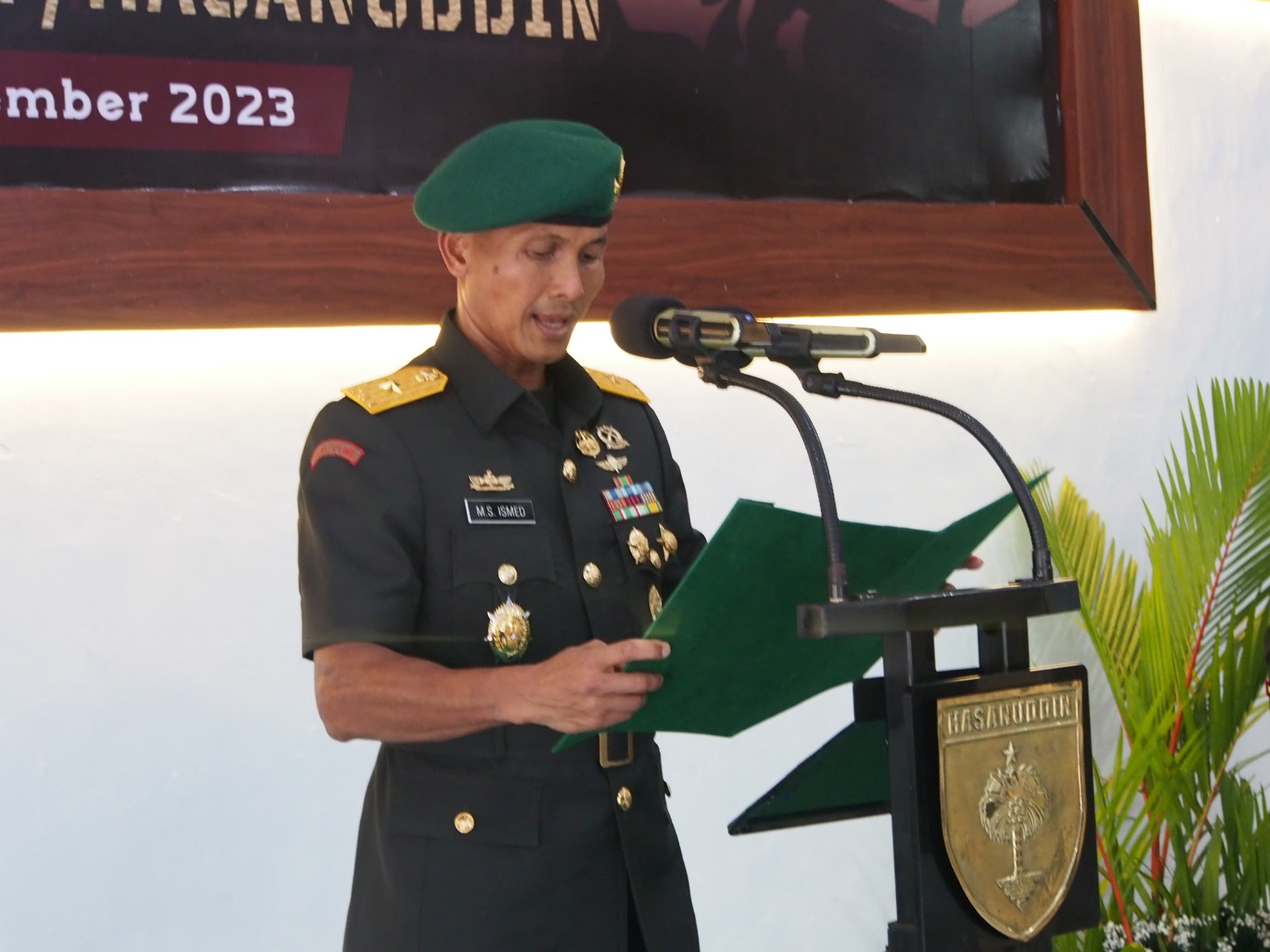 Kasdam XIV/Hasanuddin Brigjen TNI Moh. Syech Ismed saat memimpin tradisi penerimaan 12 pamen sebagai warga baru Kodam XIV/Hasanuddin.(14/11/2023). (Foto:ist)