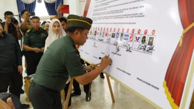 INFOKINI.ID, MAKASSAR– Menyatukan tekad mewujudkan pemilu 2024 yang sukses menjadi komitmen Kodam XIV//Hasanuddin. Komitmen yang dituangkan dalam Deklarasi Pemilu Damai menjadi instruksi Pangdam XIV/Hsn Mayjen TNI Totok Imam Santoso kepada seluruh satuan, Korem dan Kodim di jajaran Kodam XIV/Hsn.