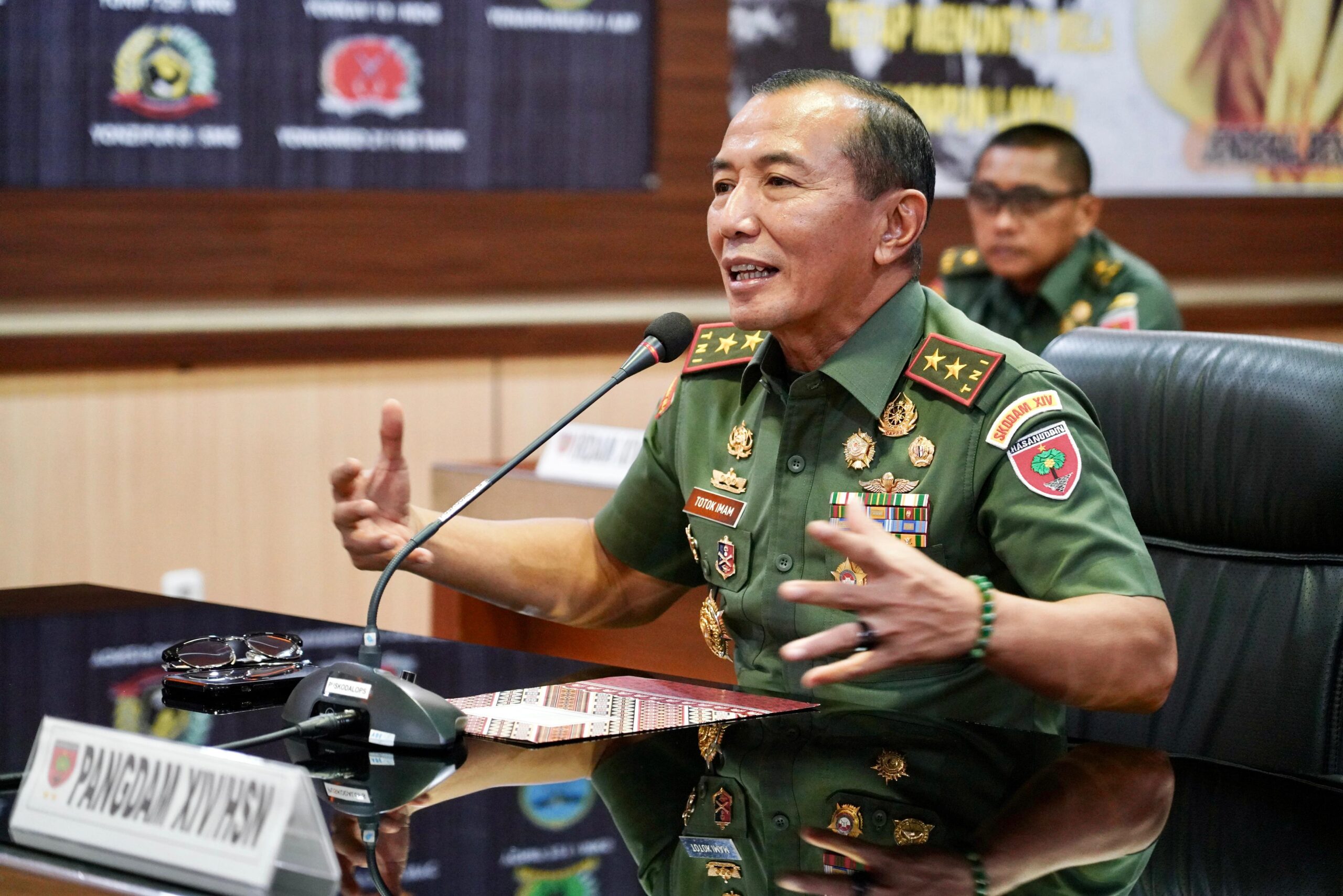 INFOKINI.ID, MAKASSAR– Profesionalisme dan militansi prajurit menjadi penekanan Pangdam XIV/Hasanuddin Mayjen TNI Dr. Totok Imam Santoso, S.I.P., S.Sos., M.Tr. (Han), saat pengarahan melalui video conference (vicon) kepada seluruh Komandan Satuan (Dansat) jajaran Kodam XIV/Hasanuddin dari ruang Puskodalops, Makodam Hasanuddin, Senin (27/11/2023).