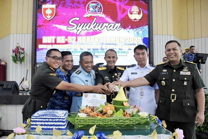 INFOKINI.ID, MAKASSAR – Kasdam XIV/Hasanuddin Brigjen TNI M Syech Ismed, mewakili Pangdam menghadiri acara syukuran HUT Ke-52 Korps Pegawai Republik Indonesia (KORPRI) Tahun 2023, bertempat di Balai Pertemuan Hasanuddin (BPH), Makodam, Kota Makassar, Rabu (29/11/2023).