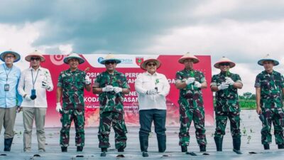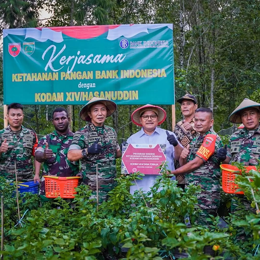 Kepala Perwakilan Bank Indonesia Provinsi Sulsel Causa Iman Karana bersama Pangdam XIV/Hasanuddin Mayjen TNI Totok Imam Santoso dan jajaran dalam program ketahanan pangan dalam upaya pengendalian inflasi. (Foto:ist)