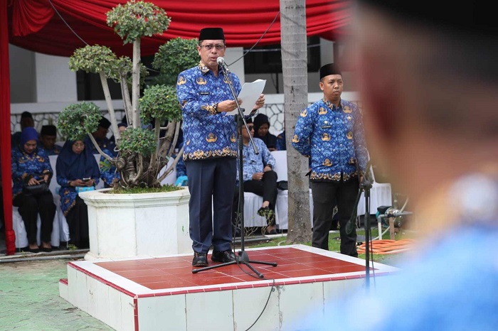 Sekretaris Daerah Kota Makassar, M. Ansar, selaku inspektur upacara menyampaikan sambutan tertulis dari Ketua Umum Dewan Pengurus Korpri Nasional, Prof Dr Zidan Arif Fakrulloh, SH,MH.