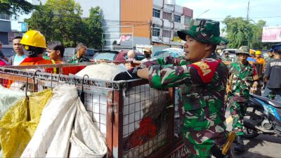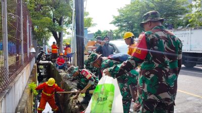 INFOKINI.ID, MAKASSAR– Mengantisipasi dampak musim penghujan terhadap kebersihan dan kesehatan lingkungan, khususnya fasilitas umum, Kodim 1408/Makassar menggerakkan personel untuk membersihkan lingkungan sekitar Pasar Terong dan saluran air di sekitarnya. Kegiatan ini sebagai upaya mengantisipasi dampak musim penghujan seperti banjir dan munculnya wabah penyakit akibat lingkungan yang kotor.