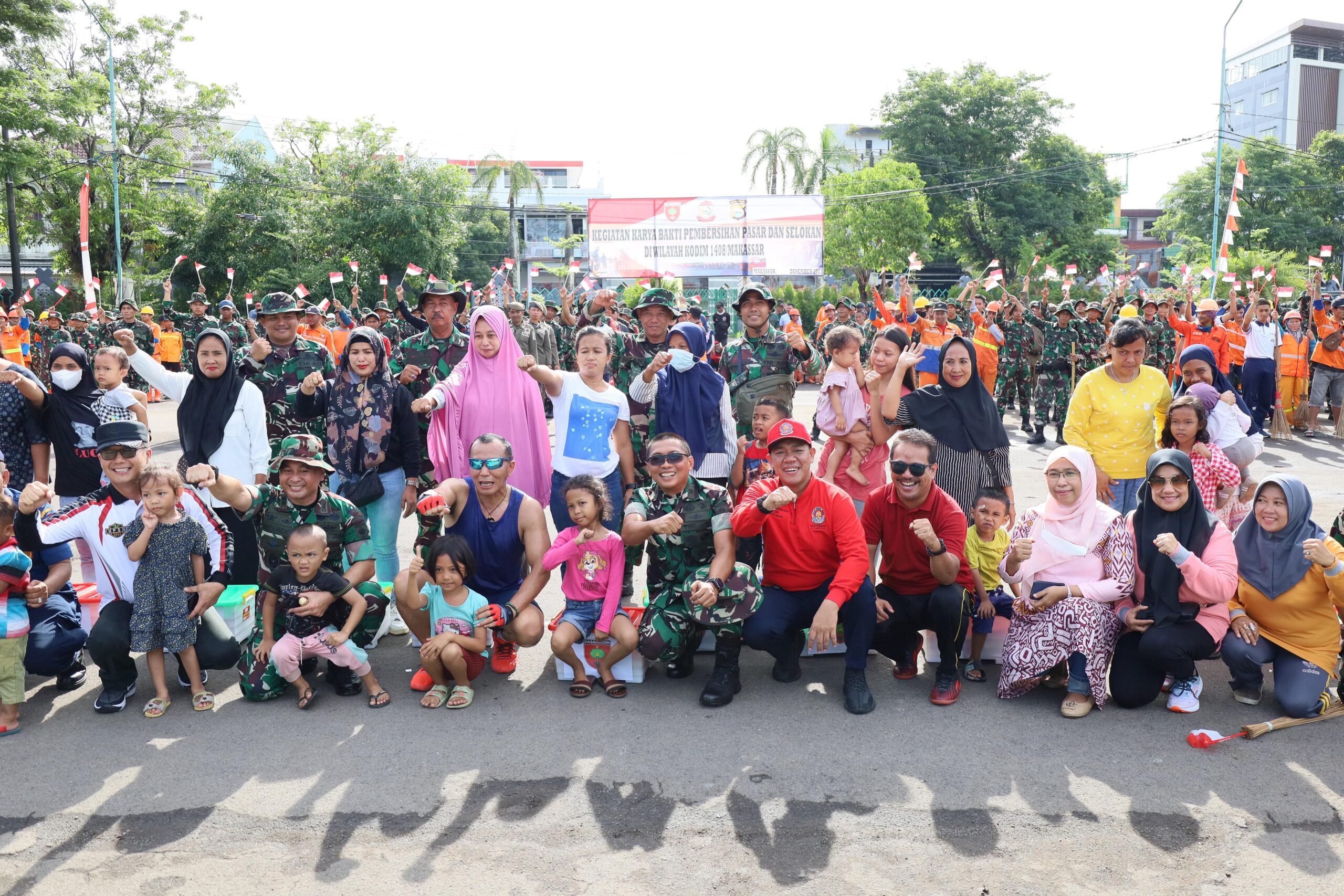 Pangdam XIV/Hasanuddin Mayjen TNI Totok Imam Santoso bersama seluruh elemen masyarakat sebelum melaksanakan karya bakti pembersihan lingkungan Pasar Terong.(foto:ist